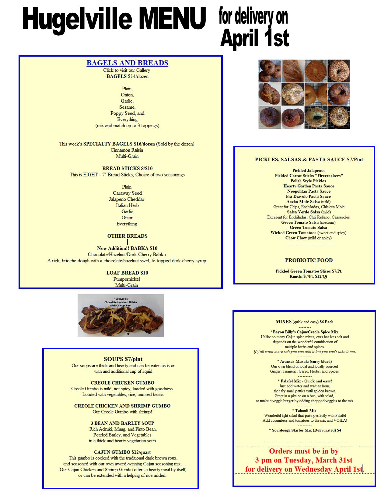 Here is our Menu/Offering for delivery on April 1st.
